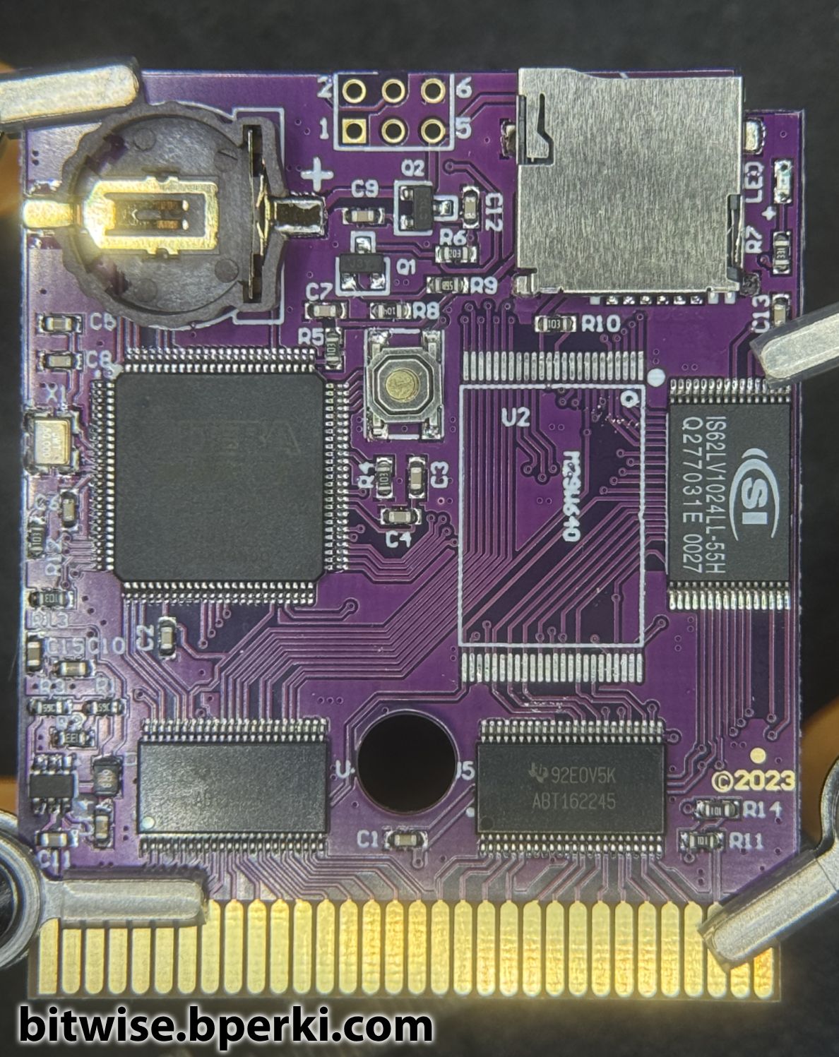 Of course, being able to write is only half the battle, we need to know what to write as well. Fortunately for me, I also have a real EverDrive of the same model the cloned one is based on, so I desoldered that flash chip, dumped the top 32kB and used that to write to the clone’s flash memory. With a little bit of solder and flux, I put both the real and clone EverDrive back together and tested them.
